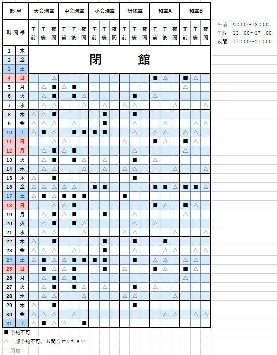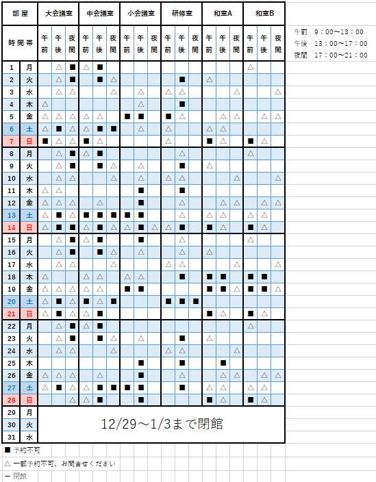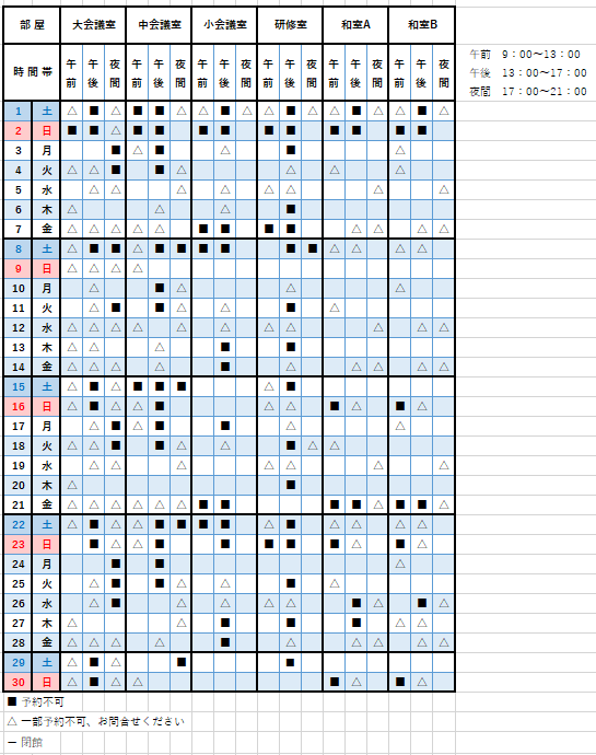 予約状況カレンダーの ■ は、既に予約が入っていることを表しています。